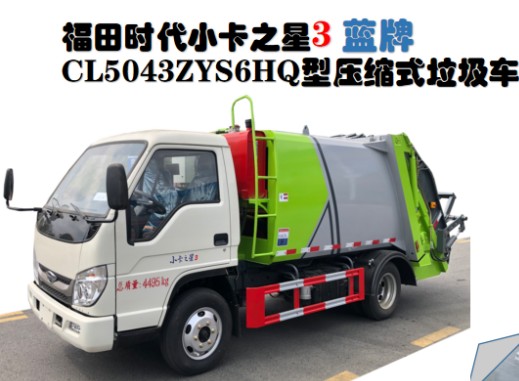 福田時代5.5立方藍牌壓縮垃圾車_程力牌CL5043ZYS6HQ型壓縮式垃圾車
