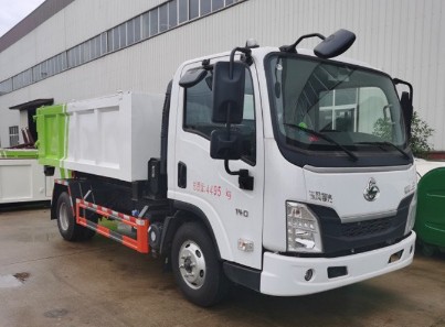 國六東風柳汽乘龍L2藍牌勾臂垃圾車_車廂可卸式垃圾車