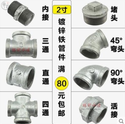 灑水車2寸鍍鋅鋼管道_三通_四通_直通_彎頭_外螺紋連接頭_內(nèi)絲連接頭_管道堵頭