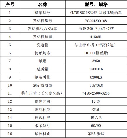 1、整車型號: CLT5188GPSEQ6B型綠化噴灑車