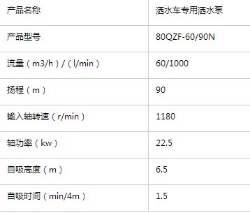 二、灑水車專用水泵基本參數(shù):